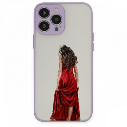 Apple iPhone 14 Pro Max Kırmızı Elbise Lila Hux Telefon Kılıfı