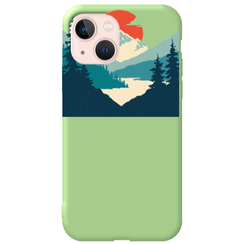 Apple iPhone 13 Mini Kırmızı Güneş Açık Yeşil Renkli Silikon Telefon Kılıfı
