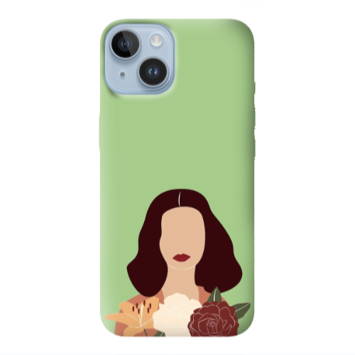 Apple iPhone 14 Kırmızı Kadın Açık Yeşil Renkli Silikon Telefon Kılıfı