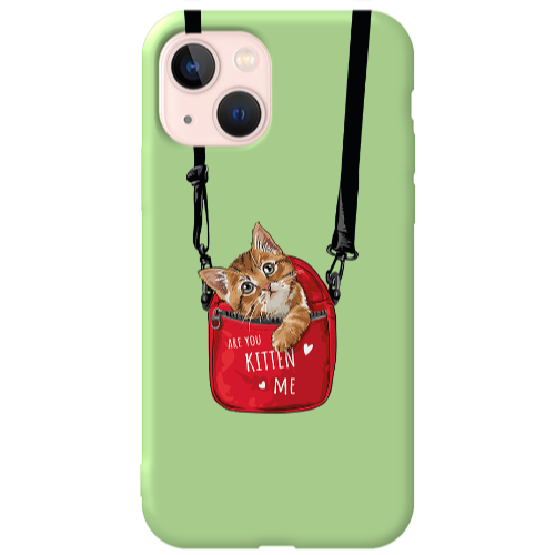 Apple iPhone 13 Mini Kitten Me Açık Yeşil Renkli Silikon Telefon Kılıfı