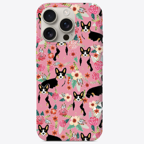 Apple iPhone 16 Pro Köpek Çiçekler Pembe Renkli Silikon Telefon Kılıfı