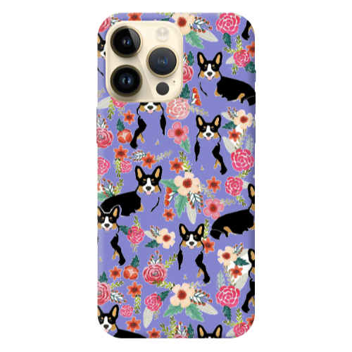 Apple iPhone 13 Pro Max Köpek Çiçekler Lila Renkli Silikon Telefon Kılıfı