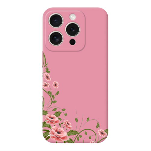 Apple iPhone 15 Pro Max Köşe Çiçeği Pembe Renkli Silikon Telefon Kılıfı