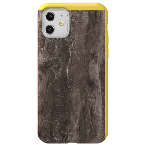 Apple iPhone 11 Koyu Kahve Sarı Renkli Silikon Telefon Kılıfı