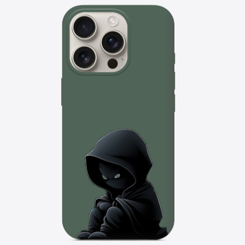 Apple iPhone 16 Pro Küçük Şeytan Koyu Yeşil Renkli Silikon Telefon Kılıfı