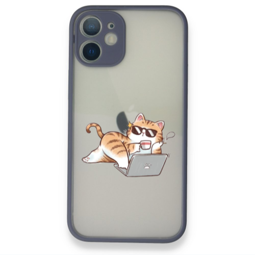 Apple iPhone 12 Laptop Kedi Gri Hux Telefon Kılıfı