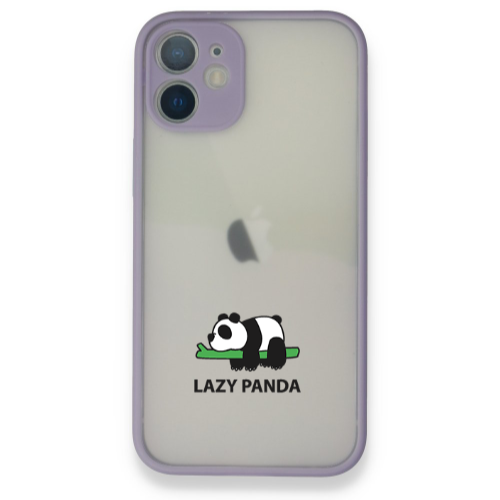 Apple iPhone 12 Lazy Panda Lila Hux Telefon Kılıfı