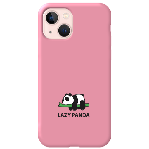 Apple iPhone 13 Mini Lazy Panda Pembe Renkli Silikon Telefon Kılıfı