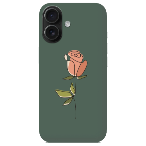 Apple iPhone 16 Line Gül Koyu Yeşil Renkli Silikon Telefon Kılıfı
