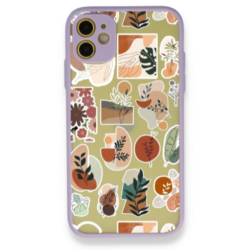 Apple iPhone 11 Line Sticker Lila Hux Telefon Kılıfı