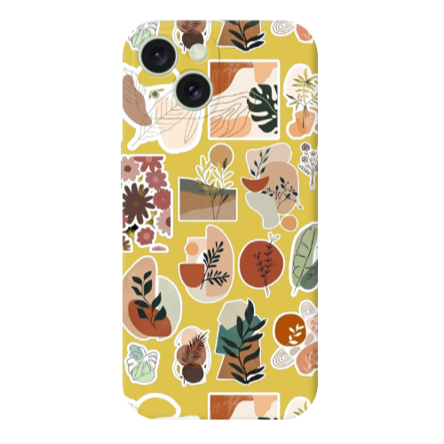 Apple iPhone 15 Line Sticker Sarı Renkli Silikon Telefon Kılıfı