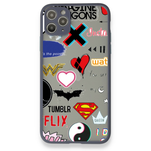 Apple iPhone 12 Pro Max Logolar Gri Hux Telefon Kılıfı