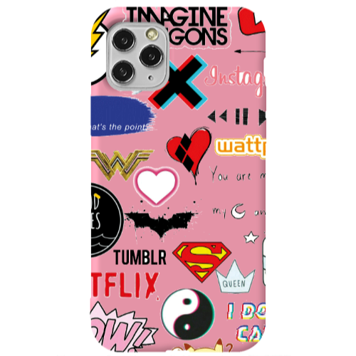 Apple iPhone 11 Pro Max Logolar Pembe Renkli Silikon Telefon Kılıfı
