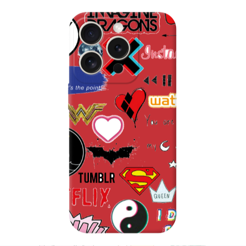 Apple iPhone 15 Pro Logolar Kırmızı Renkli Silikon Telefon Kılıfı