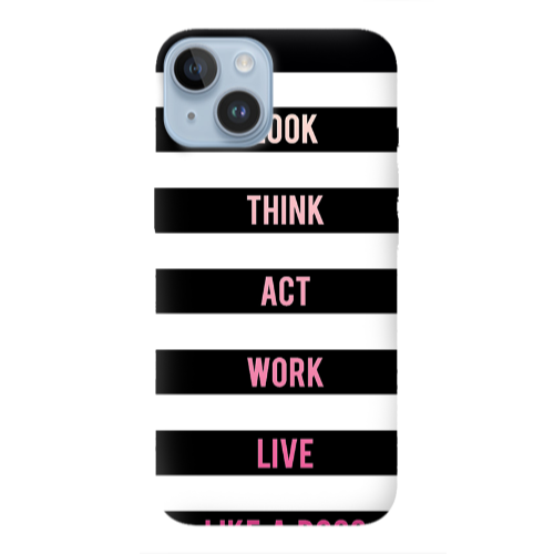 Apple iPhone 14 Look Think Act Work Live Like A Boss Krem Renkli Silikon Telefon Kılıfı