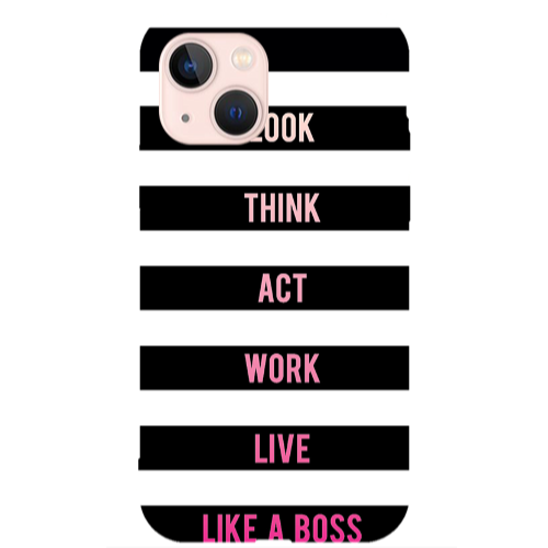 Apple iPhone 13 Mini Look Think Act Work Live Like A Boss Krem Renkli Silikon Telefon Kılıfı