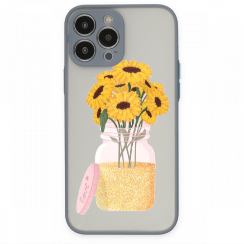 Apple iPhone 13 Pro Max Love Sarı Papatya Gri Hux Telefon Kılıfı
