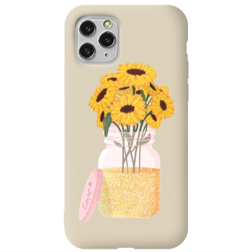 Apple iPhone 11 Pro Max Love Sarı Papatya Krem Renkli Silikon Telefon Kılıfı