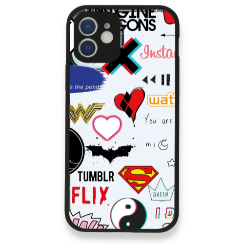 Apple iPhone 12 Makaron Black Glossy Telefon Kılıfı