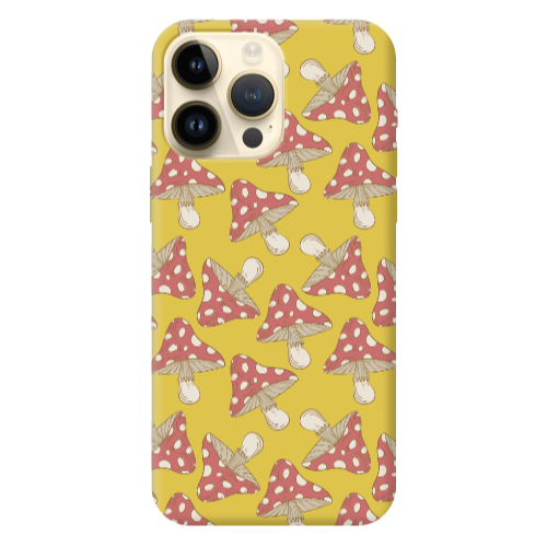 Apple iPhone 13 Pro Max Mantarlar Sarı Renkli Silikon Telefon Kılıfı