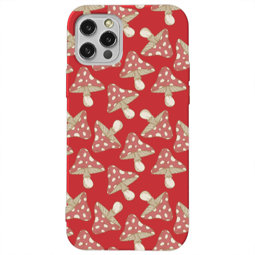 Apple iPhone 12 Pro Mantarlar Kırmızı Renkli Silikon Telefon Kılıfı