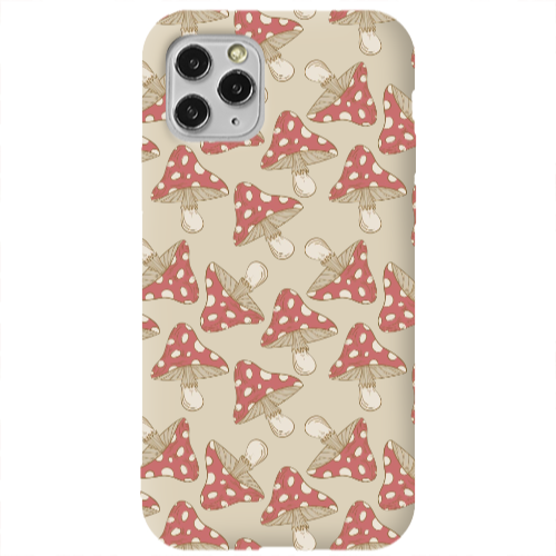 Apple iPhone 11 Pro Max Mantarlar Krem Renkli Silikon Telefon Kılıfı