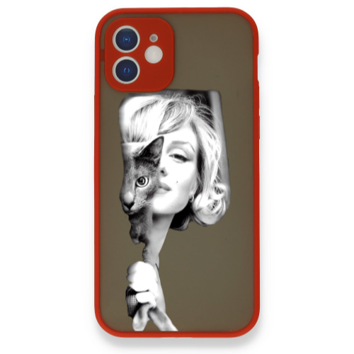 Apple iPhone 12 Marliyn Kedi Kırmızı Hux Telefon Kılıfı