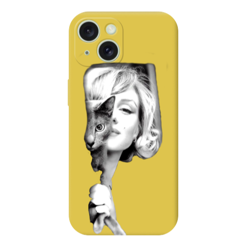 Apple iPhone 15 Plus Marliyn Kedi Sarı Renkli Silikon Telefon Kılıfı
