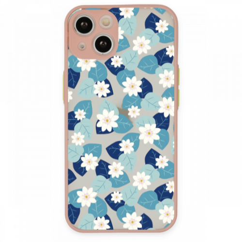 Apple iPhone 13 Mavi Çiçek Pembe Hux Telefon Kılıfı
