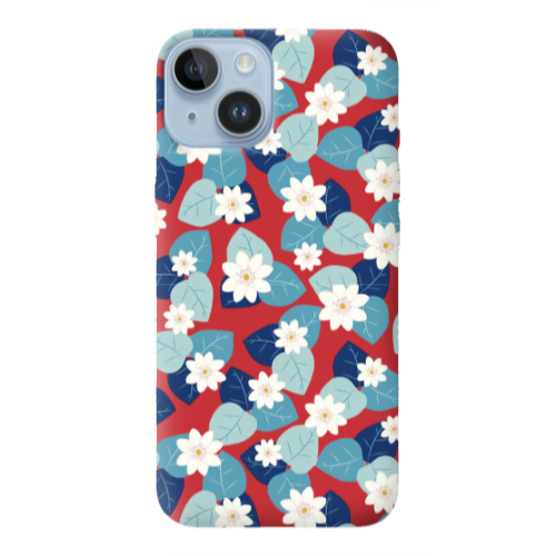 Apple iPhone 14 Plus Mavi Çiçek Kırmızı Renkli Silikon Telefon Kılıfı
