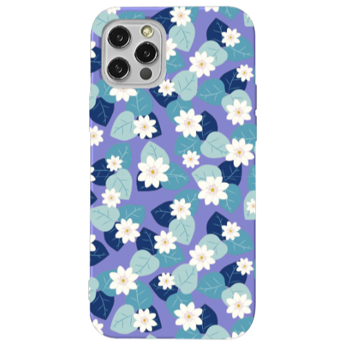 Apple iPhone 12 Pro Mavi Çiçek Lila Renkli Silikon Telefon Kılıfı