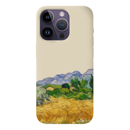 Apple iPhone 14 Pro Max Mavi Dağ2 Krem Renkli Silikon Telefon Kılıfı