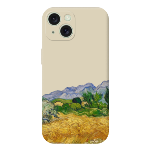 Apple iPhone 15 Mavi Dağ2 Krem Renkli Silikon Telefon Kılıfı