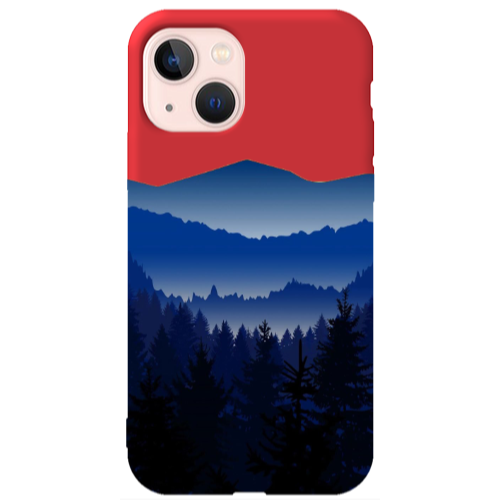 Apple iPhone 13 Mini Mavi Dağ Kırmızı Renkli Silikon Telefon Kılıfı