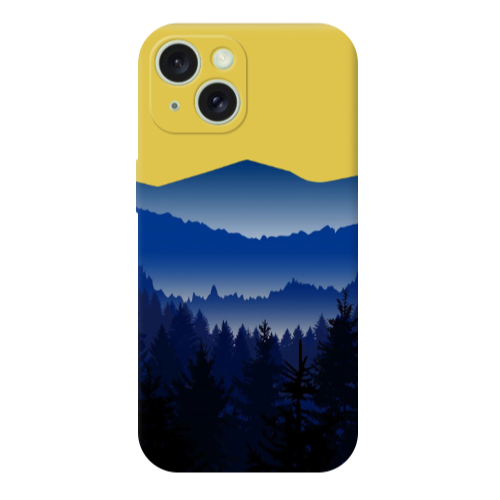 Apple iPhone 15 Mavi Dağ Sarı Renkli Silikon Telefon Kılıfı