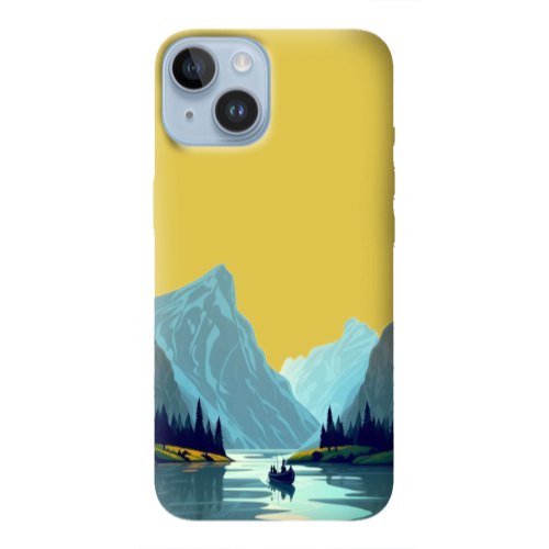 Apple iPhone 14 Plus Mavi Dağlar Sarı Renkli Silikon Telefon Kılıfı