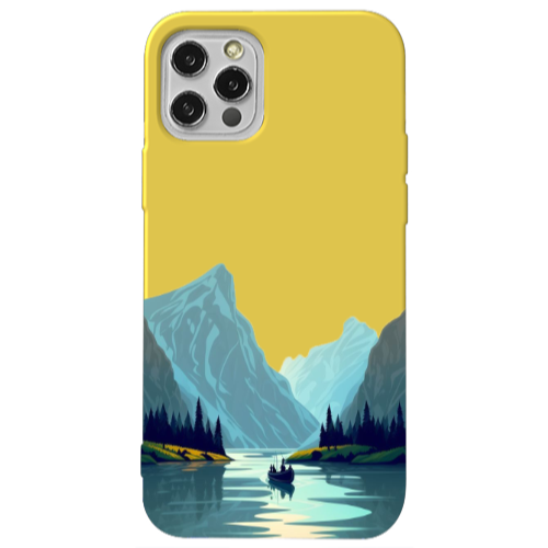 Apple iPhone 13 Pro Mavi Dağlar Sarı Renkli Silikon Telefon Kılıfı
