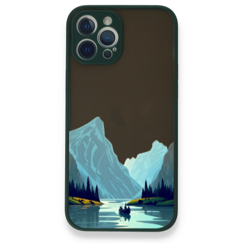 Apple iPhone 12 Pro Mavi Dağlar Koyu Yeşil Hux Telefon Kılıfı