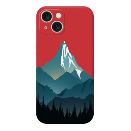Apple iPhone 15 Mavi Doğa Kırmızı Renkli Silikon Telefon Kılıfı