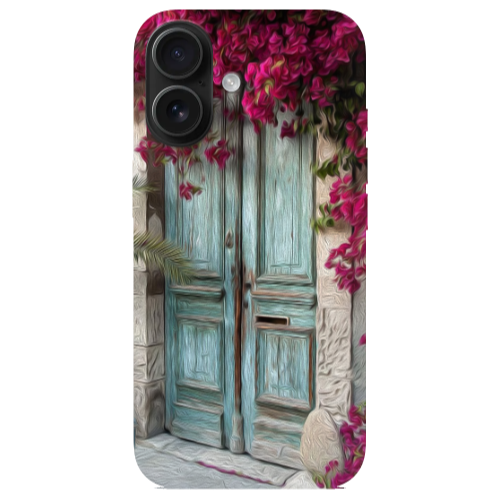 Apple iPhone 16 Plus Mavi Kapı Kırmızı Renkli Silikon Telefon Kılıfı