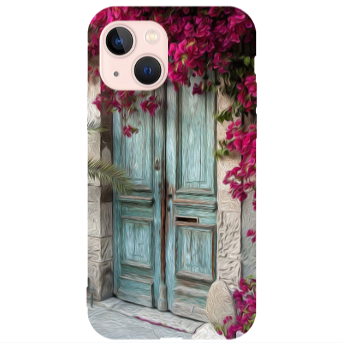 Apple iPhone 13 Mini Mavi Kapı Beyaz Renkli Silikon Telefon Kılıfı