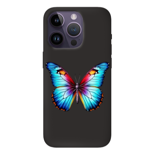 Apple iPhone 14 Pro Max Mavi Kelebek Siyah Renkli Silikon Telefon Kılıfı