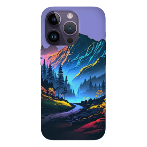 Apple iPhone 14 Pro Max Mavi Pembe2 Lila Renkli Silikon Telefon Kılıfı