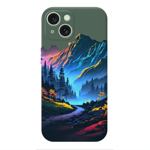 Apple iPhone 15 Mavi Pembe2 Koyu Yeşil Renkli Silikon Telefon Kılıfı