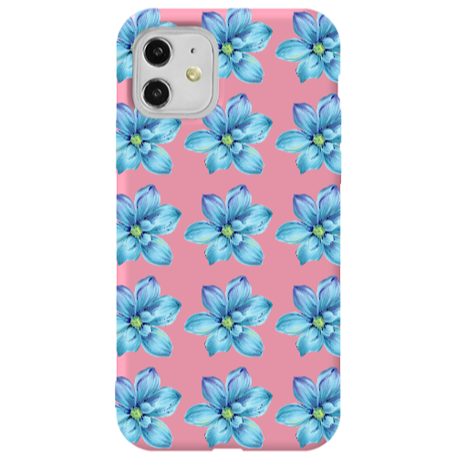 Apple iPhone 11 Mavi Sanat Çiçek Pembe Renkli Silikon Telefon Kılıfı