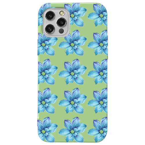 Apple iPhone 13 Pro Mavi Sanat Çiçek Açık Yeşil Renkli Silikon Telefon Kılıfı