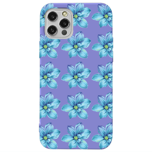 Apple iPhone 12 Pro Mavi Sanat Çiçek Lila Renkli Silikon Telefon Kılıfı