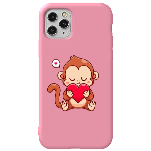 Apple iPhone 11 Pro Max Maymun Pembe Renkli Silikon Telefon Kılıfı