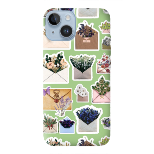 Apple iPhone 14 Mektup Çiçek Açık Yeşil Renkli Silikon Telefon Kılıfı