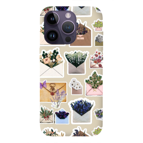 Apple iPhone 14 Pro Max Mektup Çiçek Krem Renkli Silikon Telefon Kılıfı
